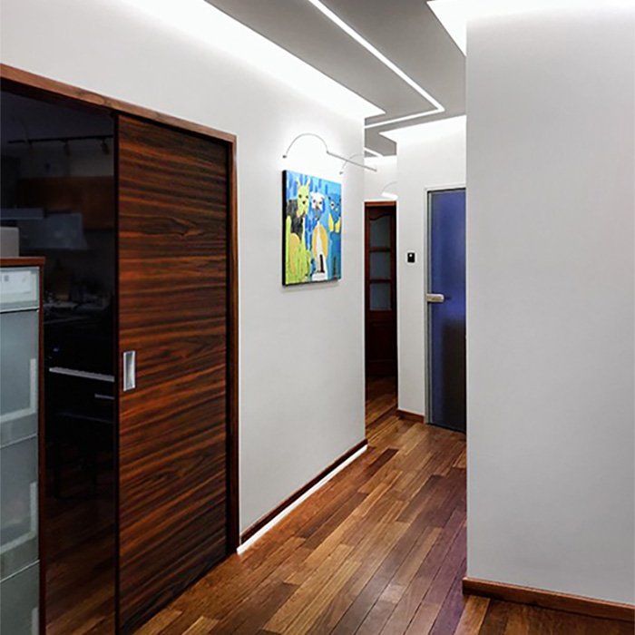 - Lineární LED stropní osvětlení v sádrokartonovém podhledu