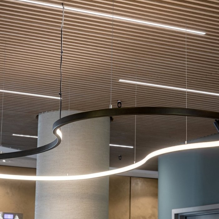 - Závěsné lineární osvětlení polygonálních tvarů - osvětlení prostor svěšeným stropním svítidlem | Vhodné pro osvětlení kanceláří a komerčních prostor.
