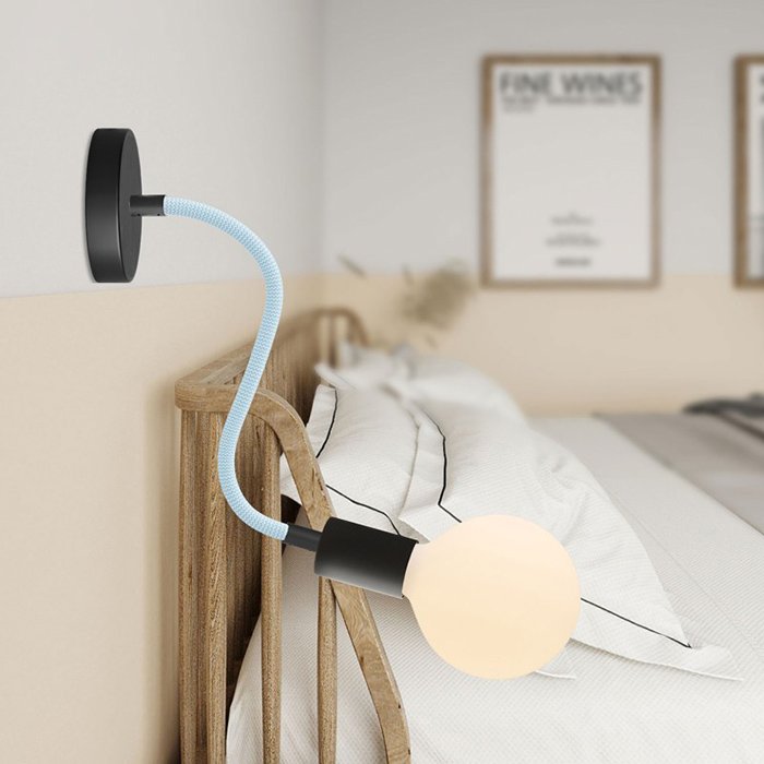 Opletený povrch z jemné Rayon textilie (umělé hedvábí) dodává kovovému husímu krku s robustní mechanikou mimořádný vzhled, díky kterému se stává nejen funkčním, ale i estetickým prvkem interiéru.