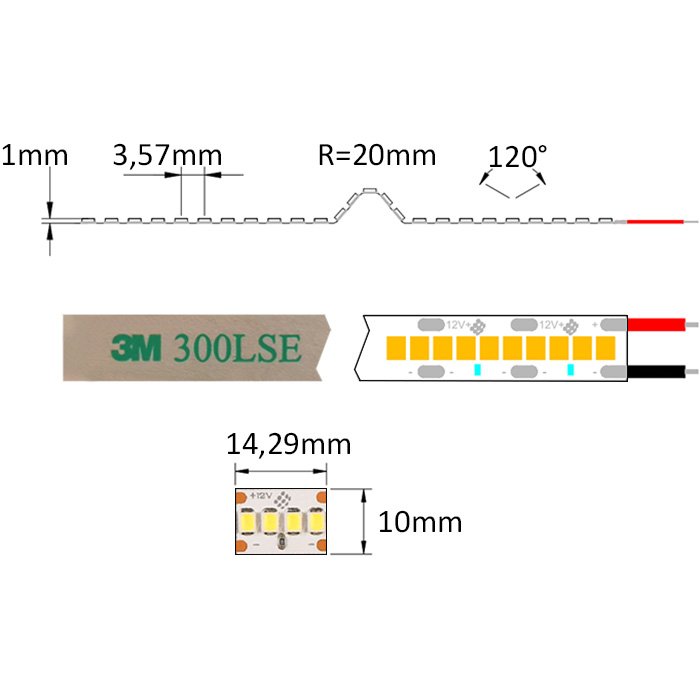 - SMD2835 (Surface-Mounted Device) technologie - zajišťuje vysokou účinnost díky efektivnímu pasivnímu chlazení LED čipů. Diody jsou umístěny v pouzdře na hliníkové chladicí podložce, což prodlužuje jejich životnost a umožňuje LED pásku SMD2835 12V dosahovat vynikající svítivosti a účinnosti s vyzařovacím úhlem 120°.
