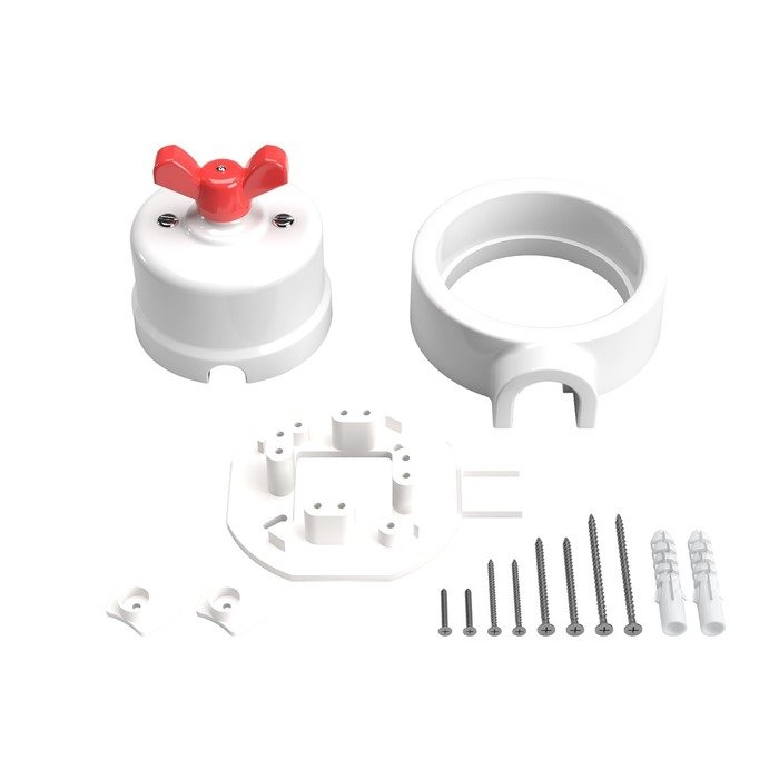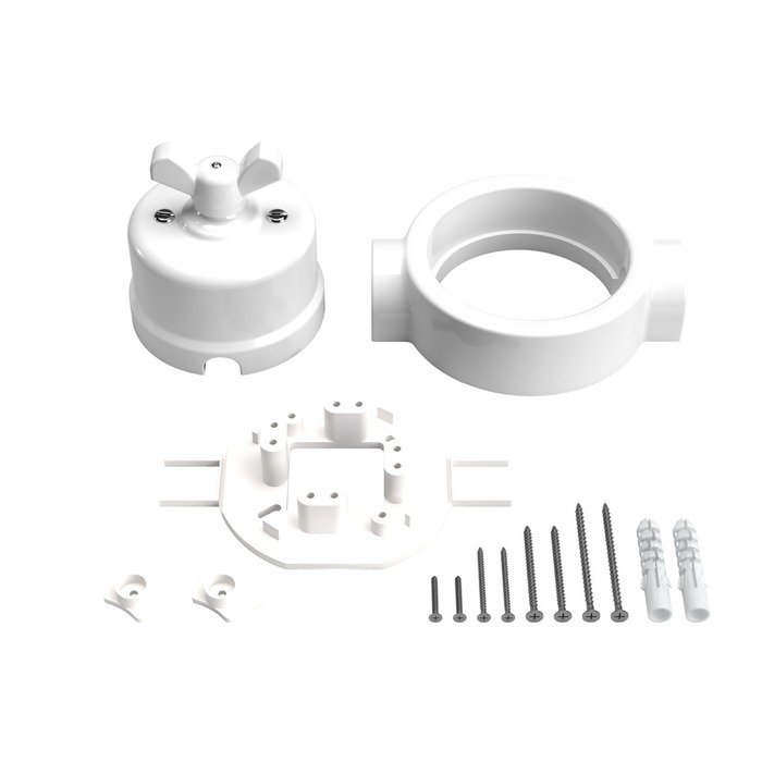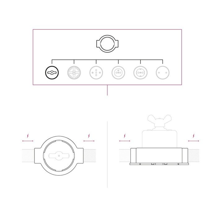 Porcelánová základna vypínače P-Nut-Base (nebo chcete-li instalační porcelánový rámeček) slouží jako praktický montážní prvek, který výrazně usnadňuje propojení přívodních kabelů z čtyř různých směrů (v závislosti na zvolené produktové variantě). Díky svému chytrému konstrukčnímu řešení umožňuje elegantní vedení kabeláže, přičemž veškeré spojení zůstává diskrétně a bezpečně ukryté uvnitř těla základny.