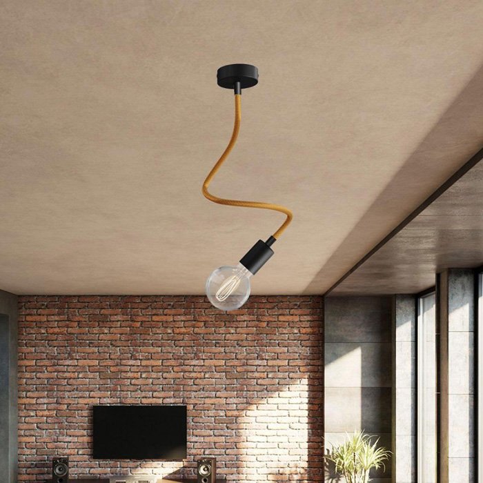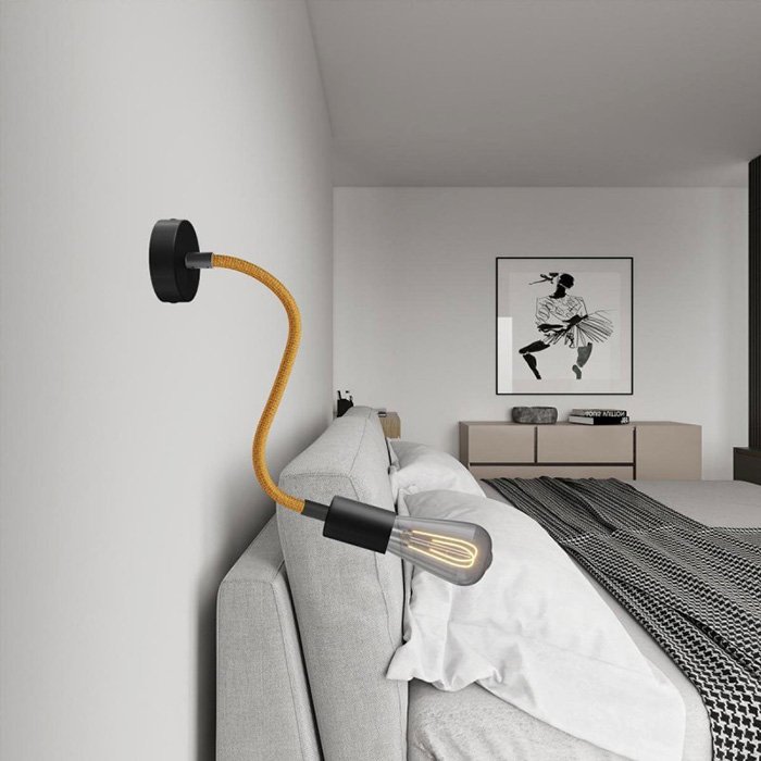 Opletený povrch z jemné Rayon textilie (umělé hedvábí) dodává kovovému husímu krku s robustní mechanikou mimořádný vzhled, díky kterému se stává nejen funkčním, ale i estetickým prvkem interiéru.