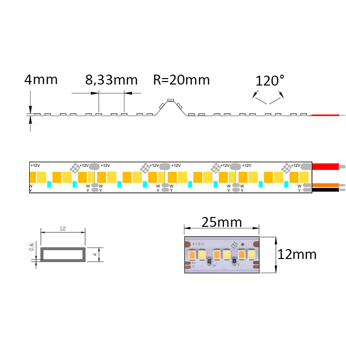 CCT LED pásek 12V Lux Miners | IP65 | 24W | 240LED | CRI90+