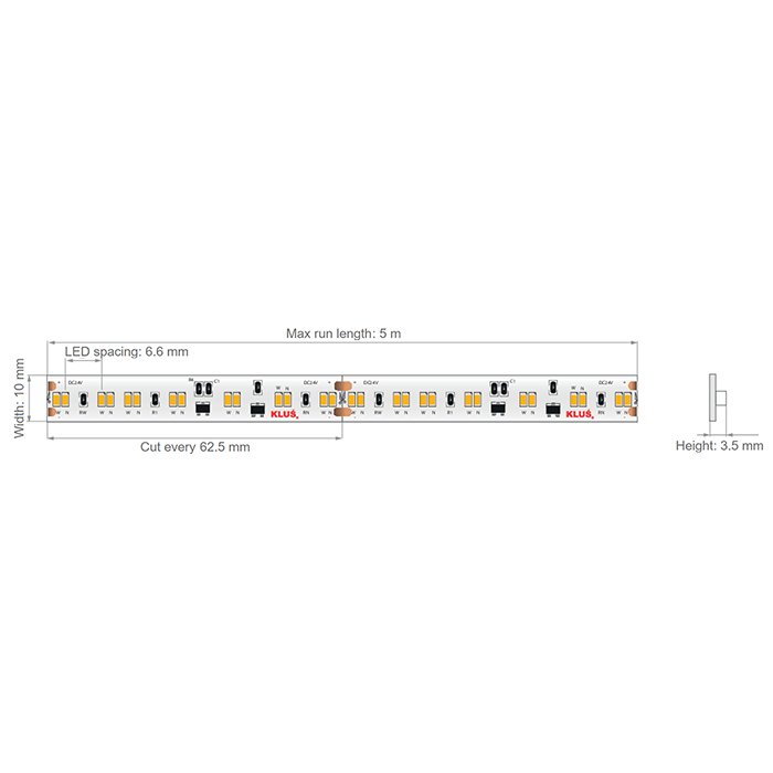 CCT LED pásek KLUŚ K-18D30-0960-24 o příkonu 9,6W, napájecím napětí 24V a vysokým indexem podání barev CRI 90+ patří mezi vysoce kvalitní CCT LED pásky se skvělými parametry, dlouhou životností a vysokou technickou hodnotou. KLUŚ poskytuje na tento produkt tovární záruku 7let. Kvalitní CCT LED pásek osazený diodami SMD5050 neztrácí rychle svou svítivost a nehrozí u něj náhodná porucha některého z modulů nebo jednotlivých LED diod. Základem pro LED pásek CCT je použitý podkladový materiál ve formě plošného spoje FPC (Flexible printed circuits) se zvýšeným podílem mědi. LED pásek je osazený nejkvalitnějšími LED diodami v počtu 224 LED/m a šířkou pásku 10mm. Při montáži do LED profilu s difuzorem tvoří svítící LED pásek souvislou linii světla bez viditelných mezer mezi diodami pouze v případě montáže do hlubšího LED profilu. CCT Ledkový pásek 24V je vhodný pro instalaci v interiéru. Splňuje třídu krytí IP20. Nemá zvýšenou odolnost proti vlhku a vodě.