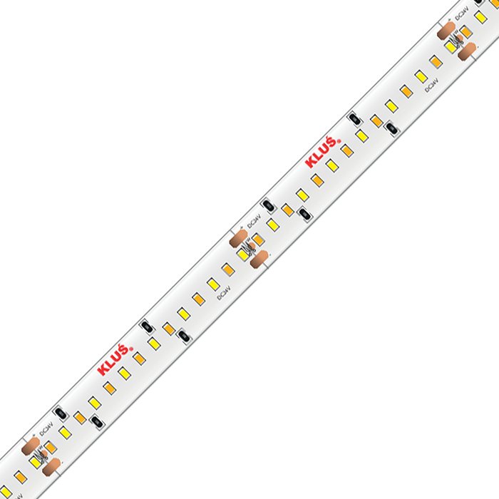 CCT LED pásek KLUŚ K-27T50-1440-24V o příkonu 14,4W, napájecím napětí 24V a vysokým indexem podání barev CRI 90+ patří mezi vysoce kvalitní CCT LED pásky se skvělými parametry, dlouhou životností a vysokou technickou hodnotou. KLUŚ poskytuje na tento produkt tovární záruku 7let. Kvalitní CCT LED pásek osazený diodami SMD5050 neztrácí rychle svou svítivost a nehrozí u něj náhodná porucha některého z modulů nebo jednotlivých LED diod. Základem pro LED pásek CCT je použitý podkladový materiál ve formě plošného spoje FPC (Flexible printed circuits) se zvýšeným podílem mědi. LED pásek je osazený nejkvalitnějšími LED diodami v počtu 252 LED/m a šířkou pásku 10mm. Při montáži do LED profilu s difuzorem tvoří svítící LED pásek souvislou linii světla bez viditelných mezer mezi diodami pouze v případě montáže do hlubšího LED profilu. CCT Ledkový pásek 24V je vhodný pro instalaci v interiéru. Splňuje třídu krytí IP20. Nemá zvýšenou odolnost proti vlhku a vodě.