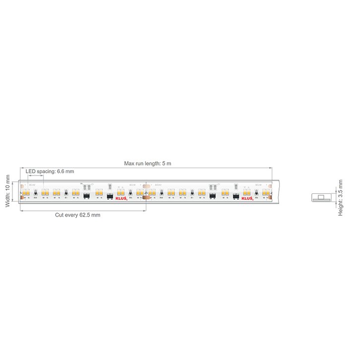 CCT LED pásek KLUŚ KWP-18D30-0960-24 9,6W/m 224LED/m CRI90+ IP65