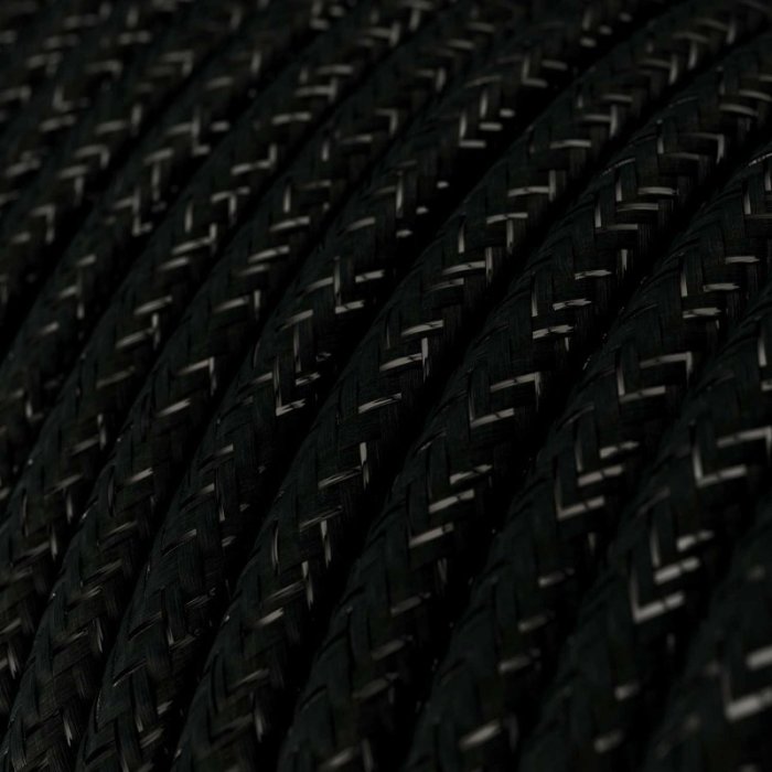 Třpytivý černý textilní kabel 2x0,75 mm s produktovým označením RayonGlitter RL04 je určen pro pevné instalace v elektrických sítích 230 V. Vhodný je zejména pro dekorativní interiérová svítidla nebo světlené sestavy, kde vynikne jeho třpytivé barevné provedení i precizní zhotovení a zároveň není vyžadován ochranný vodič (PE). Díky měděným lankovým vodičům v kulatém provedení, dvojité PVC izolaci a preciznímu zpracování nabízí kabel vysokou míru bezpečnosti, flexibilitu a nadstandardní mechanickou odolnost s nosností kabelu pro zavěšená svítidla až 2,25 kg. Povrch z jemné Rayon (umělé hedvábí) textilie dodává kabelu mimořádný vzhled, díky kterému se stává nejen funkčním, ale i estetickým prvkem interiéru. Využijte 2x0,75 mm černý třpytivý textilní kabel RL04 pro individuální či malosériovou výrobu originálních svítidel či osvětlovacích sestav s důrazem na design a detail.