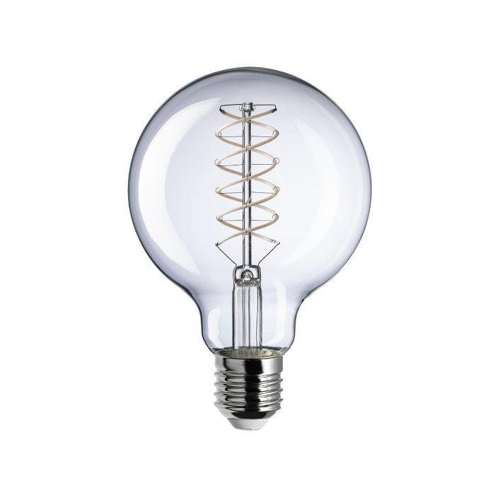 Čirá skleněná baňka zajišťuje maximální propustnost světla bez rozptylu a ztráty intenzity. Výsledkem je přirozené, jasné (až výrazně ostré) osvětlení, které zároveň podtrhuje dekorativní efekt viditelných filamentů. Tento design umožňuje dosažení světla charakteristiky: