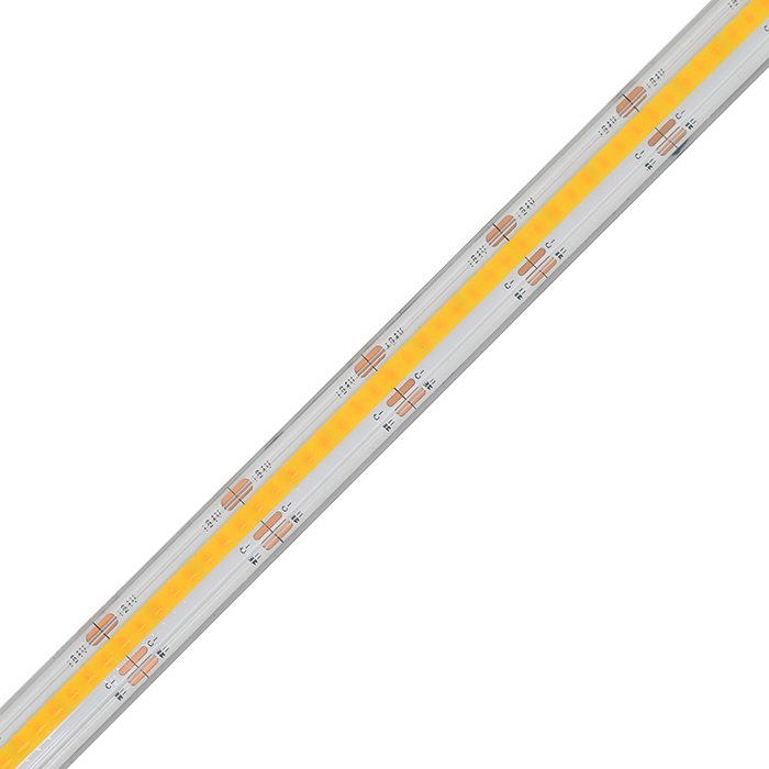 Vodotěsný COB CCT LED pásek 24V Lux Miners s produktovým označením COB-CCT24640 je osvětlovací prvek, který poskytuje možnost měnit chromatičnost osvětlení CCT (Correlated Color Temperature) díky dvěma základním diodám – WW (Warm White) a CW (Cool White). Umožňuje nastavení různých odstínů bílého světla v širokém světelném spektru 2200-6500K, které jsou vhodné jak pro pracovní prostředí tak i chvíle odpočinku. Moderní COB (Chip-on-Board) technologie s vysokou hustotou LED čipů a integrovanou optickou vrstvou zajišťuje rovnoměrný světelný tok a minimalizuje viditelné nedostatky ve světelné linii.
