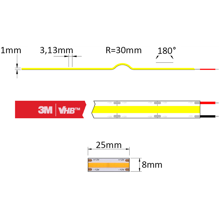 Doplňující technické informace pro bílý COB 12V LED pásek SC12320