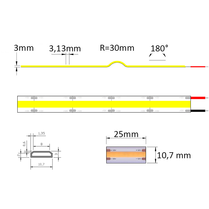 COB LED pásek 12V Lux Miners | IP65 | 8W | 320LED | CRI90+
