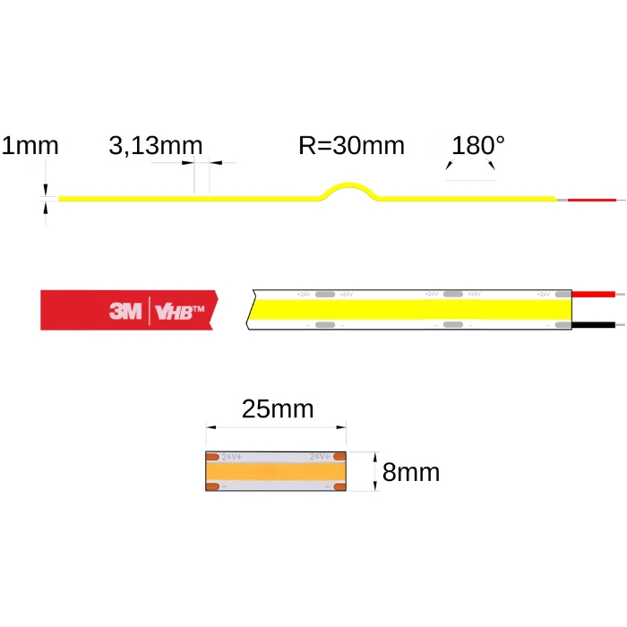Doplňující technické informace pro bílý COB 24V LED pásek COB-SC24480-10-25MM