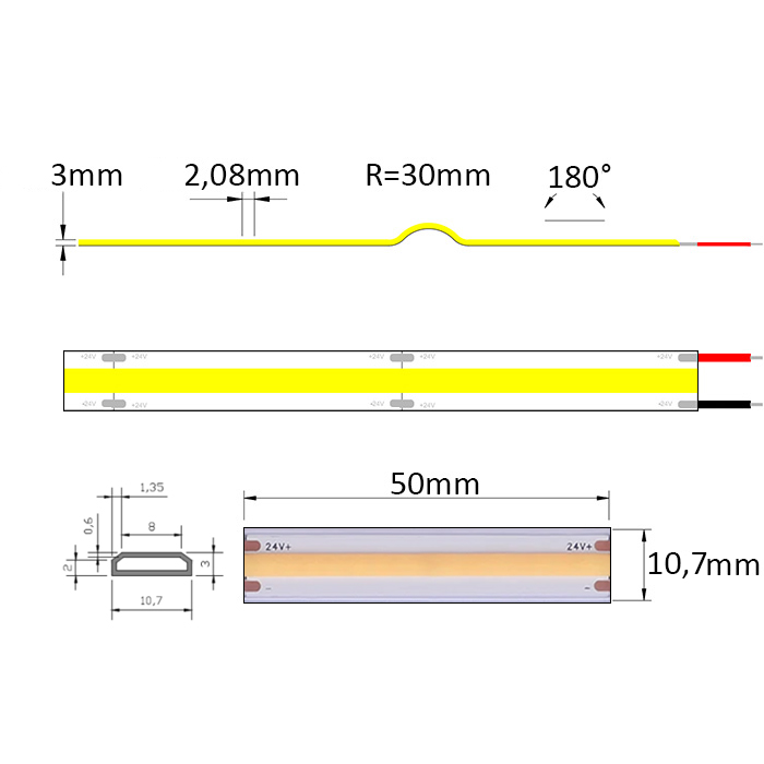 COB LED pásek 24V Lux Miners | IP65 | 8W | 320LED | CRI90+