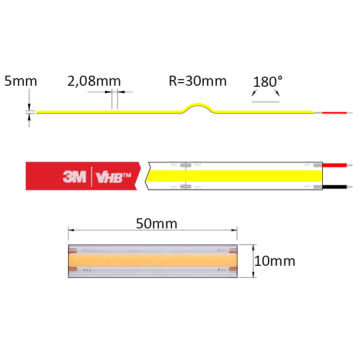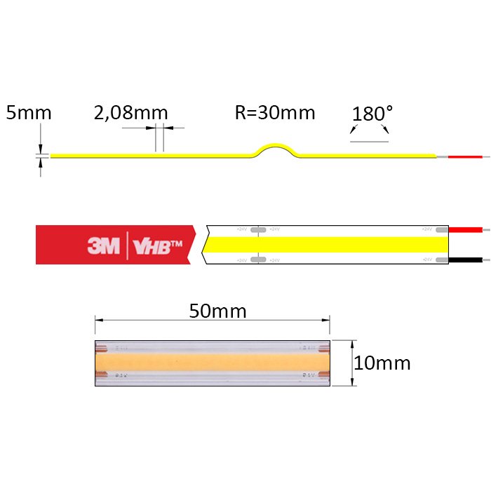 Doplňující technické informace pro vodotěsný COB LED pásek 24V SC24480