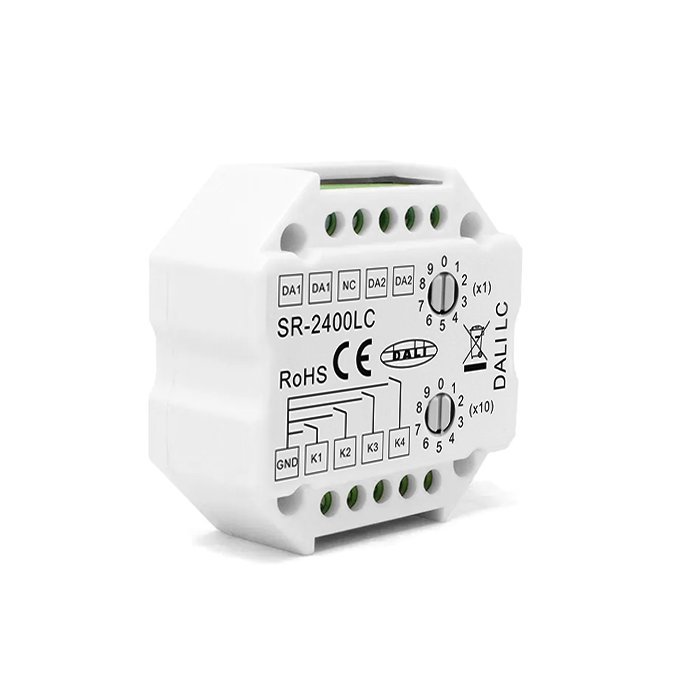 Převodník PUSH-DIM tlačítko DALI s označením SR-2400LC je špičkové elektronické zařízení navržené pro navržené pro přesné řízení osvětlení. Umožňuje integraci standardních tlačítkových vypínačů od předních výrobců do systémů Smart Home a automatizace budov. Podporuje funkce zapnutí/vypnutí a plynulé stmívání, přičemž umožňuje nezávislé ovládání až čtyř tlačítek prostřednictvím DALI sběrnicového protokolu. Převodník tlačítek PUSH-DIM na DALI SR-2400LC se vyznačuje spolehlivostí a vysokou kvalitou zpracování, kterou garantuje renomovaná značka Lux Miners by Sunricher.