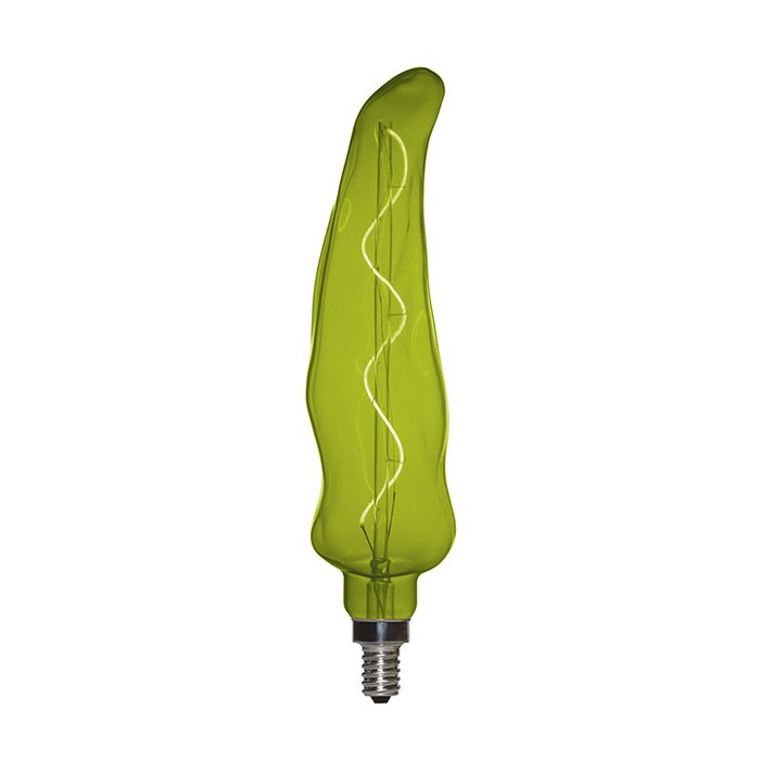 Stmívatelná zelená žárovka E14 závitu o příkonu 3W je dekorativní světelný zdroj nezaměnitelného vzhledu. Unikátní design žárovky z pera italských mistrů světla pod názvem Pepper (v nejširší části Ø 50mm) nabízí esteticky výjimečnou alternativu pro atmosférické osvětlení v různých závěsných svítidlech s objímkou E14. Zelená LED žárovka je stvořena pro oživení interiéru kreativním a nápaditým způsobem. Svítící vlákno s technologií COB LED filament navozuje pocit dokonalého dekorativního vzhledu s příjemným teplým tónem světla charakteristiky: