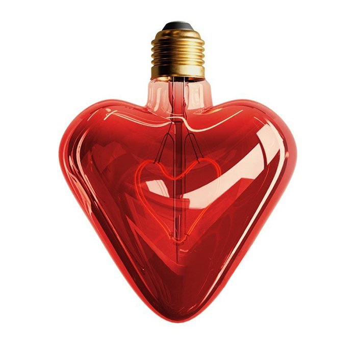 Stmívatelná okrasná žárovka srdce E27 závitu o příkonu 5W je působivý a estetický světelný zdroj. Unikátní design červené žárovky s produktovým názvem Heart Red (v nejširší části Ø 125mm) je rafinovaným produktem a vytříbeným světelným dílem, hned z několika důvodů. Žárovka ve tvaru srdce umožňuje vytváření jedinečných dekorativních svítidel a lamp s objímkou E27. Mistrovským dílem je rovněž červené zpracování skleněné baňky, které společně s tvarováním svítícího LED filament vlákna upoutá veškerou pozornost. Stmívatelná srdce žárovka Heart Red vytváří relaxační a charismatické okrasná osvětlení specifikace: