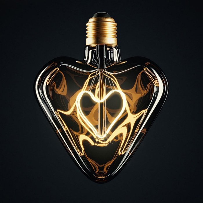 Stmívatelná okrasná žárovka srdce E27 závitu o příkonu 5W je působivý a estetický světelný zdroj. Unikátní design kouřové žárovky s produktovým názvem Heart Smoky (v nejširší části Ø 125mm) je rafinovaným produktem a vytříbeným světelným dílem, hned z několika důvodů. Žárovka ve tvaru srdce umožňuje vytváření jedinečných dekorativních svítidel a lamp s objímkou E27. Mistrovským dílem je rovněž kouřové zpracování skleněné baňky, které společně s tvarováním svítícího LED filament vlákna upoutá veškerou pozornost. Stmívatelná srdce žárovka Heart Smoky vytváří relaxační a charismatické okrasná osvětlení specifikace: