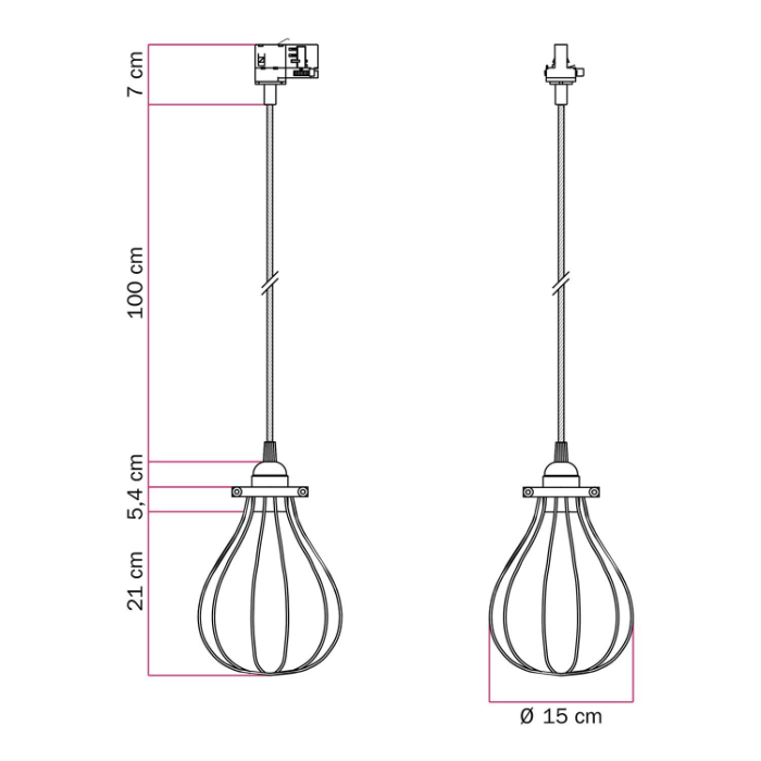 Drátěný lustr E27 Drop do kolejnicového systému 3F | 230V