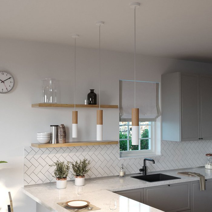 Možností jeho využití je hned několik. Válcové dvoubarevné stínidlo bodovky Tuberi můžete použít k renovaci stávajícího svítidla a dodat mu nový vzhled, nebo jej využít k vytvoření zcela originálního a personalizovaného světelného řešení. Vybrat si můžete také z naší #tablink#svitidla#kolekce svítidel##, kterých je stínidlo součástí. Kovově-dřevěné stínítko je dodáváno s objímkou E14, stačí jej pouze doplnit přívodním kabelem a žárovkou, aby se stalo originálním světelným prvkem vašeho interiéru.