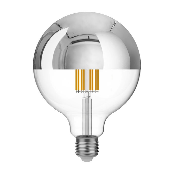 Stmívatelná LED žárovka se stříbrným zrcadlovým vrchlíkem BeBulbs-AS a závitem E27 je speciální typ dekorativního světelného zdroje, který kombinuje funkčnost s estetickým efektem. Dominantní tvar připomínající glóbus G125 (Globe - v nejširší části Ø 125mm) dokonale ladí s běžnými svítidly a spojuje klasický design s moderní LED technologií. Precizní technické zpracování spolu s renomovanou kvalitou značky BeBulbs garantuje špičkové světelné vlastnosti, vysokou účinnost a maximální spokojenost při každodenním používání.
