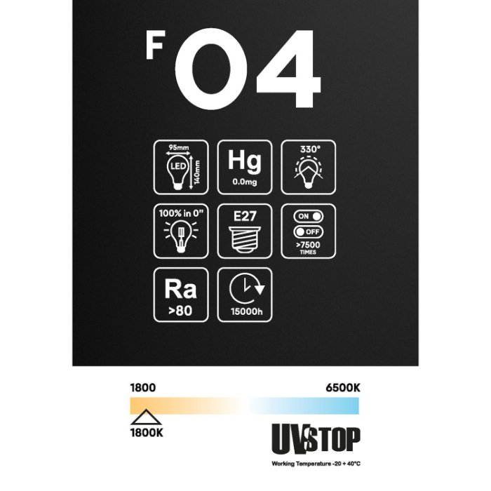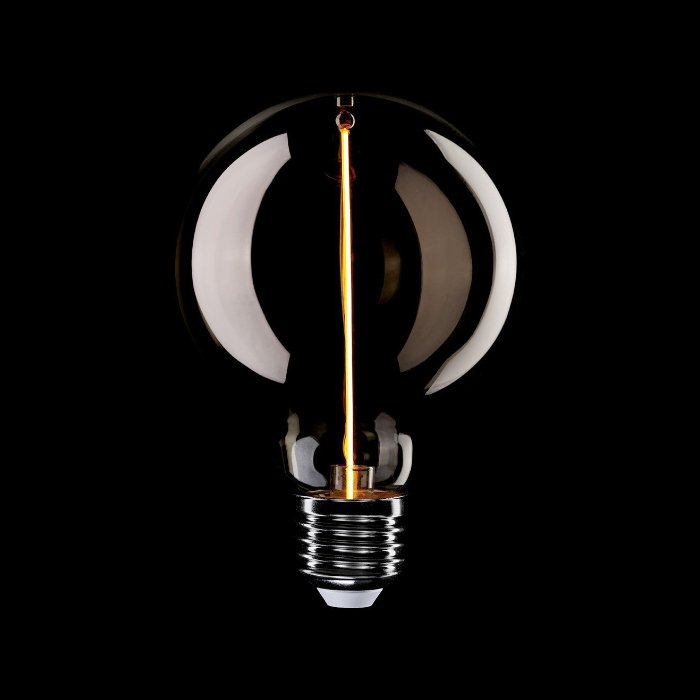 Kouřová skleněná baňka jemně tlumí intenzitu světla a vytváří příjemně rozptýlený, měkký efekt osvětlení. Díky tomuto efektu působí osvětlení decentně a elegantně, přičemž stále zachovává dekorativní charakter viditelných filamentů. Výsledkem je atmosférické světlo s harmonickou a sofistikovanou náladou charakteristiky:
