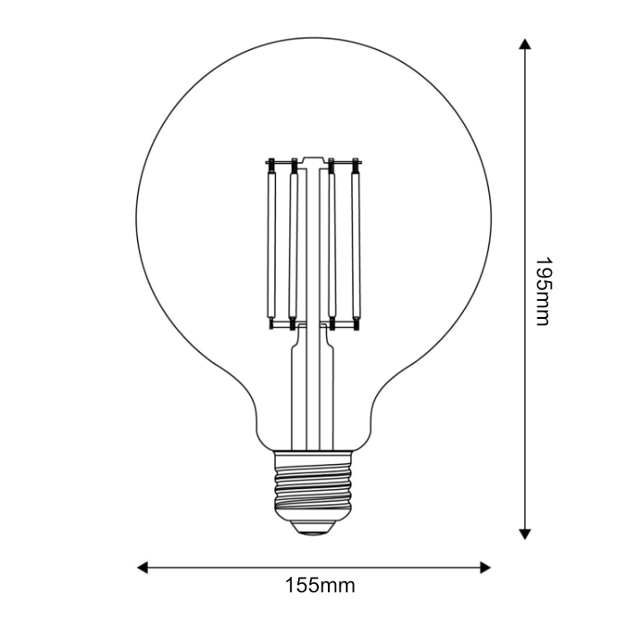 Čirá stmívatelná LED žárovka E27 z kolekce Long Filament je energeticky úsporný světelný zdroj s dlouhou životností. Působivý kulatý tvar připomínající glóbus G155 (Globe - v nejširší části Ø 95mm) dokonale ladí s běžnými svítidly a spojuje klasický design s moderní LED technologií v podobě dlouhých filament vláken. Ty dodávají žárovce atraktivní detail, který vynikne jak při svícení, tak i v zhasnutém stavu. Precizní technické provedení v kombinaci s renomovanou kvalitou značky DayLight zajišťuje vysokou účinnost, špičkové světelné parametry a spolehlivý komfort při každodenním používání.