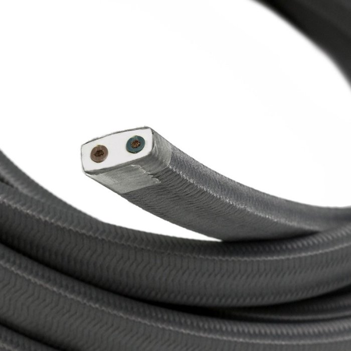 Plochý šedý textilní kabel 2x1,5mm RayonGloss CM03 | lesklý