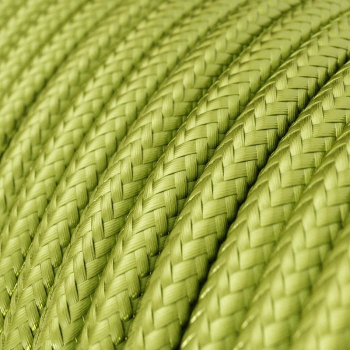 Látkový kabel v zelené barvě kiwi s efektem mimořádného lesku a hedvábným opletem je nabízen ve variantách: