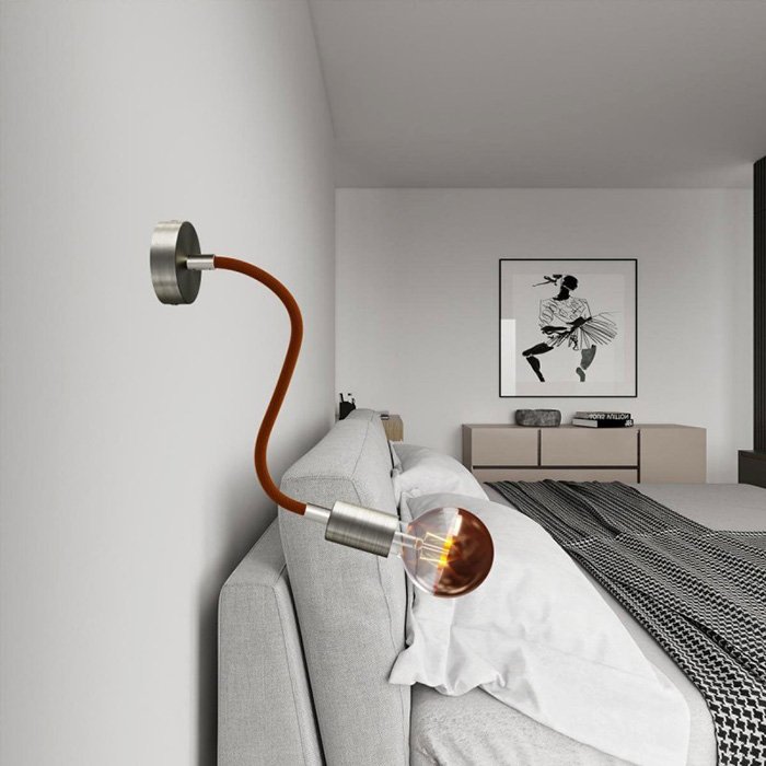 Opletený povrch z jemné Rayon textilie (umělé hedvábí) dodává kovovému husímu krku s robustní mechanikou mimořádný vzhled, díky kterému se stává nejen funkčním, ale i estetickým prvkem interiéru.