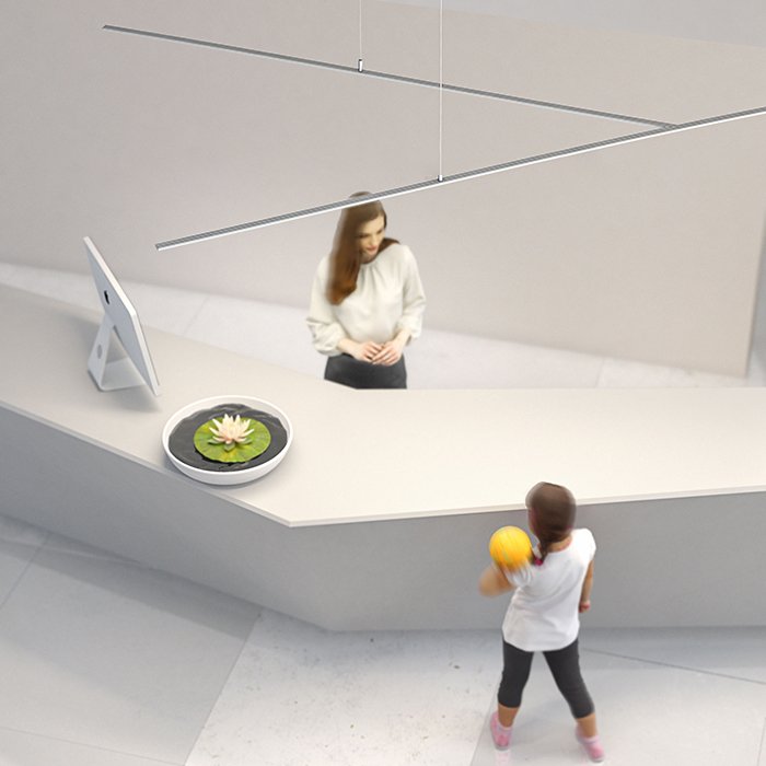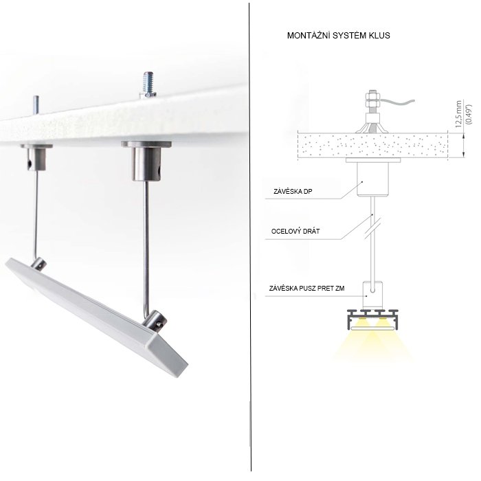 - Zavěšení a svěšení ze stropu nebo stěny - na ocelovém lanku nebo nerezovém kovovém prutu.