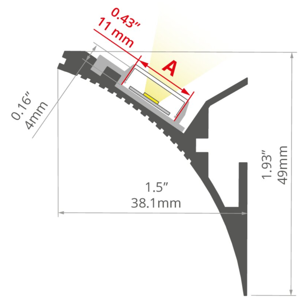 - Dutina / prostor mezi zdí a přisazenou lištou pro skryté vedení napájecích kabelů a elektrických rozvodů je výhodou u rozsáhlých projektů osvětlení.