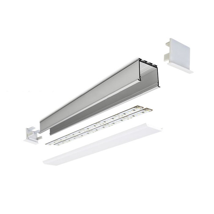 Kolejnicový LED profil k zabudování do sádrokartonu nebo zdiva LOKOM je určen pro malosériovou výrobu a profesionální realizaci osvětlení. Konstrukce profilu z vysoce kvalitní hliníkové slitiny je optimalizována pro paralelní instalaci dvou LED pásků, čímž umožňuje dosažení vysokého světelného výkonu a rovnoměrného rozložení světelného toku. Je součástí systémového řešení, které vyžaduje instalaci do #tablink#profily#kompatibilní vodicí ALU kolejnice## dle typu podkladu. LED profil do sádrokartonu nebo zdiva umožňuje realizaci čistých, světelných linií s minimálním obvodovým rámečkem, včetně polygonálních tvarů podle individuálních architektonických požadavků. Precizní technické zpracování v kombinaci s celosvětově uznávanou produktovou kvalitou značky KLUŚ zaručuje špičkové světelné vlastnosti, vysokou účinnost a dlouhou životnost osvětlovacího systému.