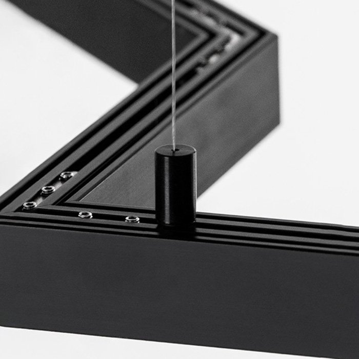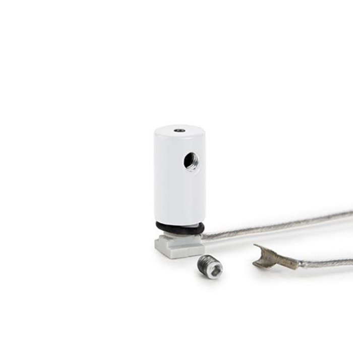 - připojení napájecího vodiče umožňuje vedení napětí skrze hlavici závěsného prvku na ocelové lanko až do svítidla k LED pásku.