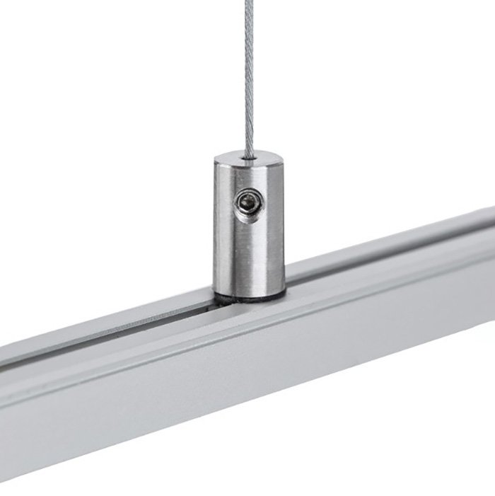 - Možnost regulace délky ocelového lanka je možná jeho zkrácením. Fixace lanka v závěsce pomocí imbusového cvrčku.