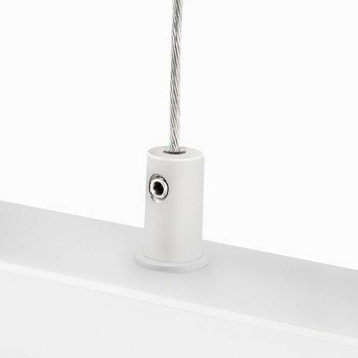 - připojení napájecího vodiče umožňuje vedení napětí skrze hlavici závěsného prvku na ocelové lanko až do svítidla k LED pásku.