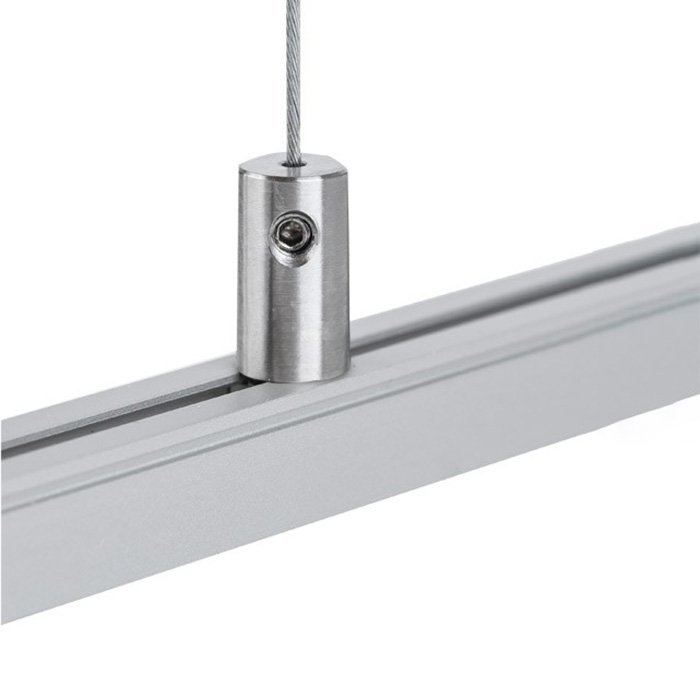 - Možnost regulace délky ocelového lanka je možná jeho zkrácením. Fixace lanka v závěsce pomocí imbusového cvrčku.