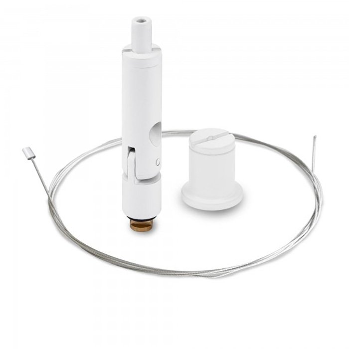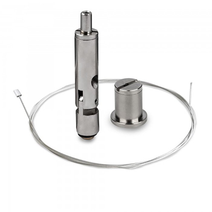 - Pohyblivý kloub pro nastavení sklonu zavěšení svítidla úpravou délky ocelového lanka.