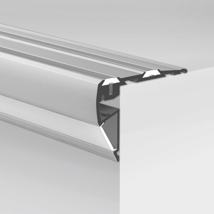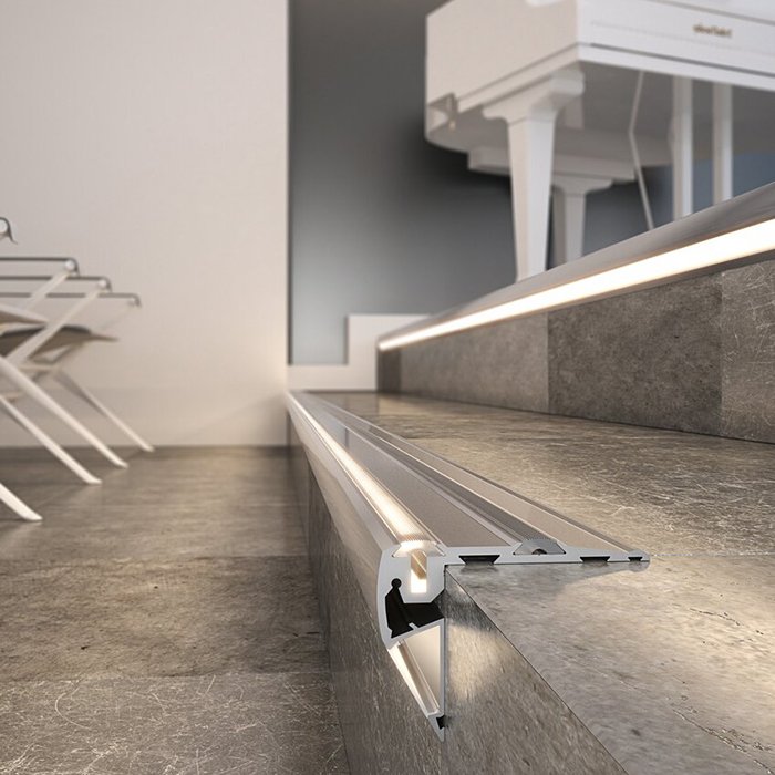 LED profil na hranu schodu STEPUS je vyroben z kvalitní hliníkové slitiny, která zaručuje velmi dobrou tuhost, mechanickou odolnost a tepelnou vodivost vzhledem k designu a rozměrům produktu. Díky popsaným vlastnostem je vhodný pro PROFI instalace osvětlení formou: