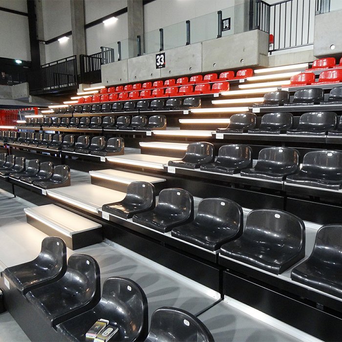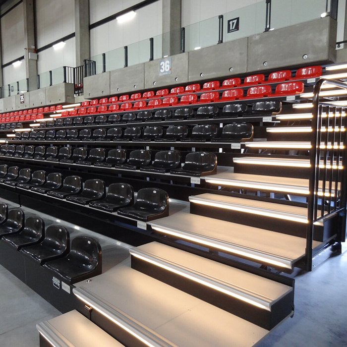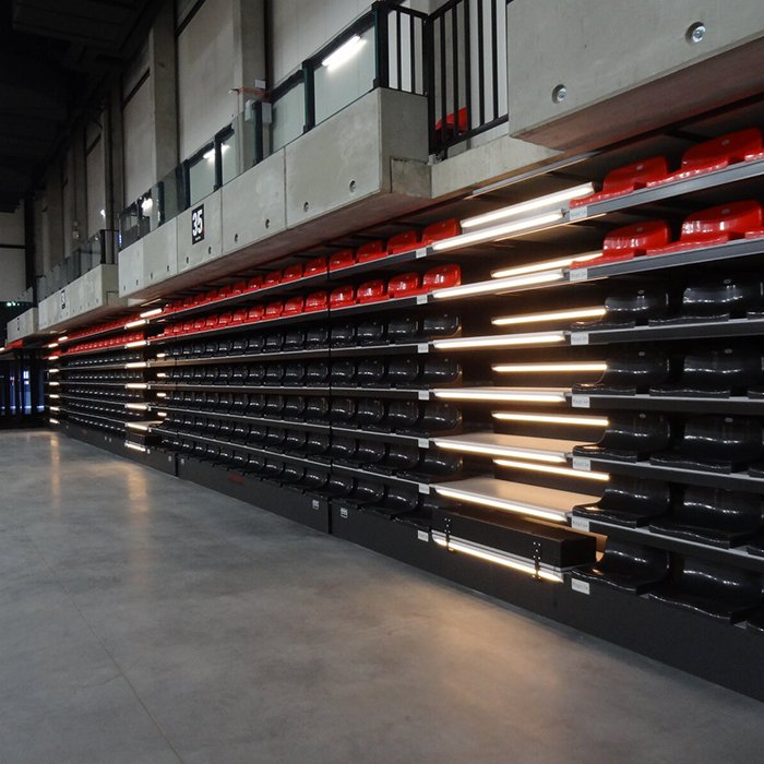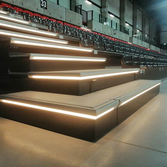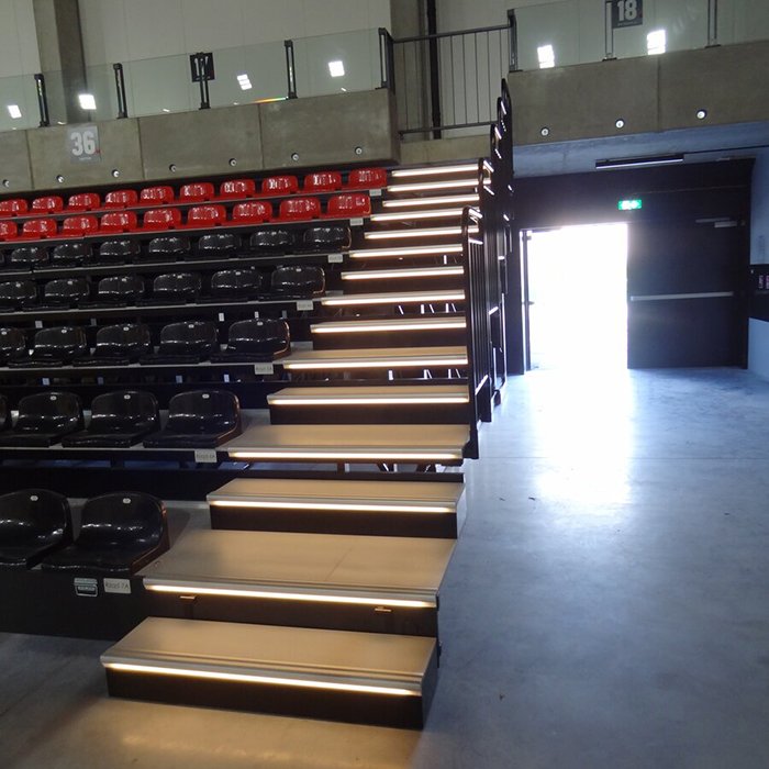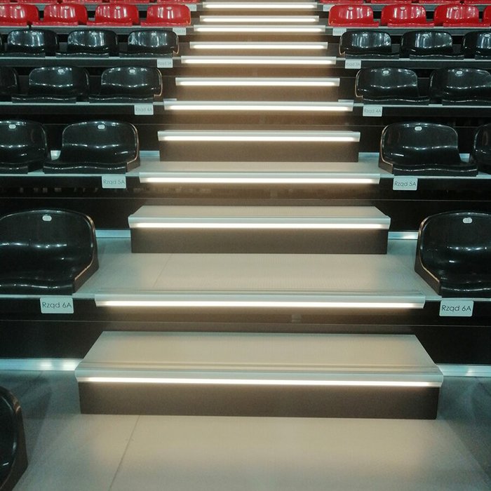 - Komora / prostor mezi schodem a přisazeným profilem pro skryté vedení napájecích kabelů a elektrických rozvodů je výhodou u rozsáhlých projektů osvětlení.