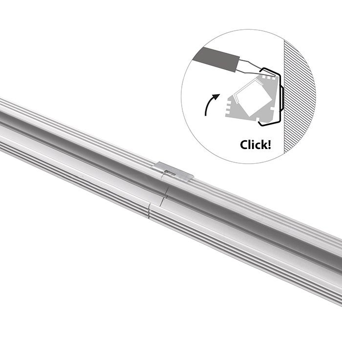 - Spolehlivé upevnění LED lišty k povrchu na pouhý CLICK.