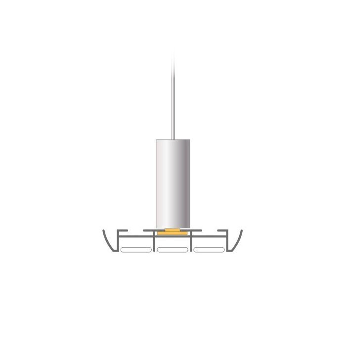 - připojení napájecího vodiče umožňuje vedení napětí skrze hlavici závěsného prvku na kovový prut nebo rameno až do svítidla k LED pásku.
