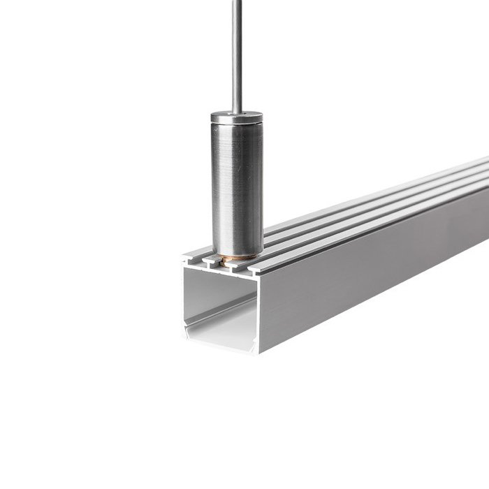 Výhodou závěsného úchytu pro ALU profily a lišty PUSZ-PRET-ZM je volitelná možnost (kterou můžete a nemusíte využít) jednopólového napájení DC 12V/24V. Díky tomu můžete napájet LED pásek umístěný v hliníkovém profilu skrze #tablink#montaz#kovový prut nebo rameno##. Tento způsob instalace zcela eliminuje potřebu samostatného napájecího kabelu. Zavěšení a napájení poskytuje svobodu v navrhování svítidel a jejich umístění v prostoru, aniž by byl narušen estetický dojem napájecími kabely. Využijete také stropní a nástěnné závěsné prvky pro výrobu svítidel: