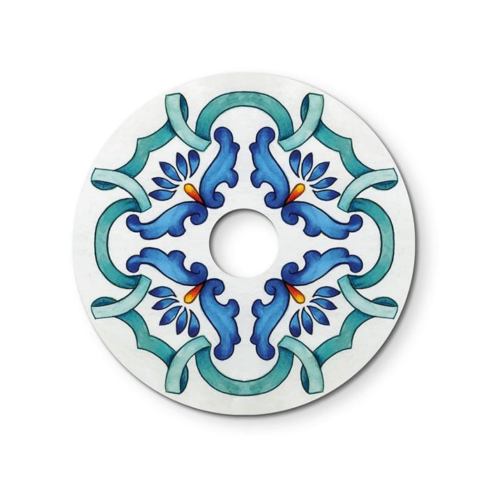 Zvláštní pozornost si zaslouží i jedinečný design obrázků a ilustrací, inspirovaný vzory dlaždic Majolica, které z nich činí ikonický symbol středomořského stylu. Každý motiv je precizně propracovanou kombinací oslnivých barevných kontrastů a výrazných linií, jež upoutávají pohled a proměňují osvětlení prostoru v harmonický zážitek nesoucí atmosféru Středozemního moře.