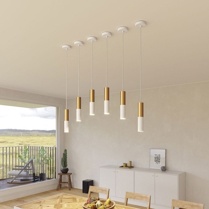 Interiérové kovové stínidlo pro bodové světlo s objímkou E14 a modelovým označením Tubici představuje minimalistické, stylové a odolné řešení pro stropní lustry či závěsná svítidla. Jeho úzký světelný kužel zajišťuje směrované osvětlení, zatímco dvoubarevné provedení (složeno z 2x Tubic) zvyšuje vizuální atraktivitu a přináší do interiéru výrazný designový kontrast.