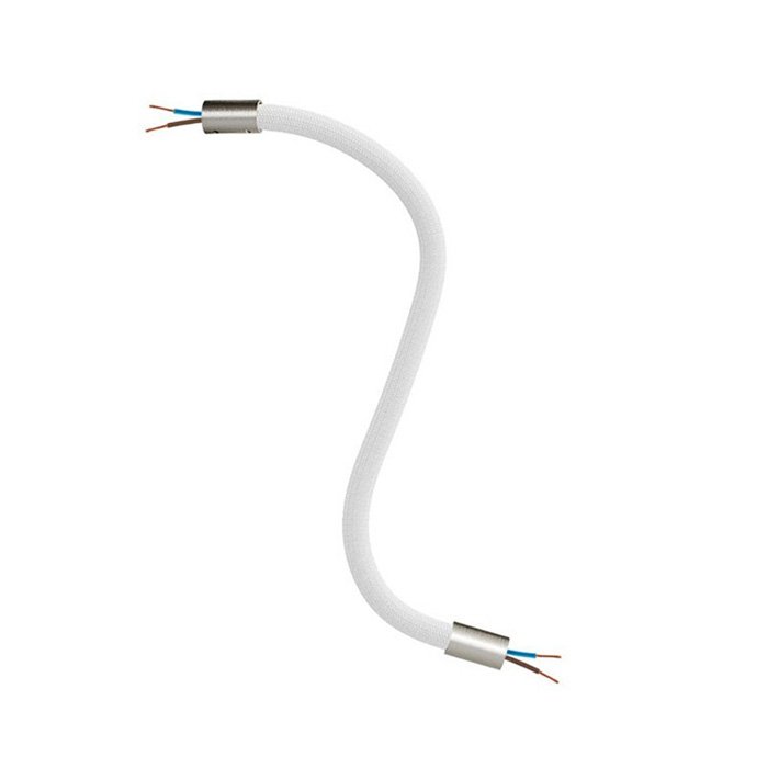 Flexibilní rameno s vodičem a lesklým bílým opletem RM01 z umělého hedvábí je mimořádným produktem systému Creative Flex, který dokáže sestavování a výrobu svítidel posunout na novou úroveň. Srdcem produktu je robustní a kvalitně zpracovaný kovový husí krk v jehož dutině je skryt vodič 2x 0,75mm. Elektrický vodič slouží pro vedení napájení 230V a umožňuje sestavování osvětlovacích systémů třídy II. Estetické zakončení flexibilního ramena zajišťují barevné kovové koncovky. Všechny kreativní duše jistě ocení možnost výběru z více barevných variant. Flexibilní rameno s koncovkou je vstupní branou k sestavování svítidel pomocí dalších komponent jako jsou:
