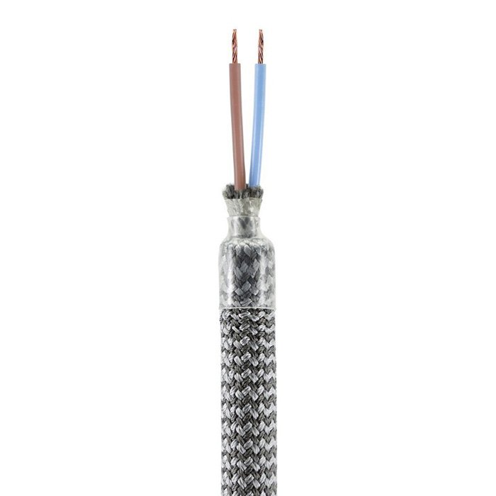 O dokonalý vizuální zážitek se stará látkový oplet v šedé Titanium barvě RM75, který je vyroben z umělého hedvábí. Hedvábný oplet flexibilní trubice je typický svým hladkým, někdy až lesklým povrchem a výraznými barvami. Titanium hedvábný oplet charakterizuje kombinace šedých odstínů barev ve vzoru CIK CAK. Hedvábí je vzhledově atraktivní a perfektně se hodí pro instalace jak v domácím prostředí, tak i uvnitř komerčních prostor.