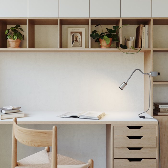 - Univerzální uchycení na desku - snadné připevnění lampy na stolní desku nebo jiný povrch o maximální šířce 45 mm pomocí šroubovacího mechanismu.