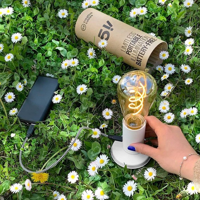 Přenosná stolní lampa do USB SI! je vybavena 5V žárovkou velikosti ST64 a kovovým stolní podstavcem. Naopak součástí balení není USB-C kabel. Tato konkrétní verze USB lampy je dodávána se speciální kartonovou dárkovou krabičkou s kovovou základnou . Tento 100% bezplastový obal byl navržen jako opakovaně použitelné pouzdro pro vaši lampu, aby byla ještě udržitelnější a snadno se přepravovala.