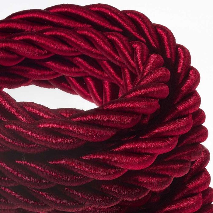 Vínový textilní lanový kabel 3x0,75 mm s produktovým označením RayonGloss-24 je určen pro pevné instalace v elektrických sítích 230 V. Ideálně se hodí pro dekorativní interiérová svítidla a designové světelné sestavy, kde naplno vynikne jeho přirozený vzhled, věrně připomínající skutečný provaz. Díky měděným lankovým vodičům ve splétaném provedení, dvojité PVC izolaci a preciznímu zpracování nabízí kabel vysokou míru bezpečnosti, flexibilitu a nadstandardní mechanickou odolnost s nosností kabelu pro zavěšená svítidla až 2,75 kg. Povrch z jemné Rayon (umělé hedvábí) textilie dodává lanovému kabelu mimořádný vzhled, díky kterému se stává nejen funkčním, ale i estetickým prvkem interiéru. Využijte 3x0,75 mm vínový lanový textilní kabel pro individuální či malosériovou výrobu originálních svítidel či osvětlovacích sestav s důrazem na design a detail.